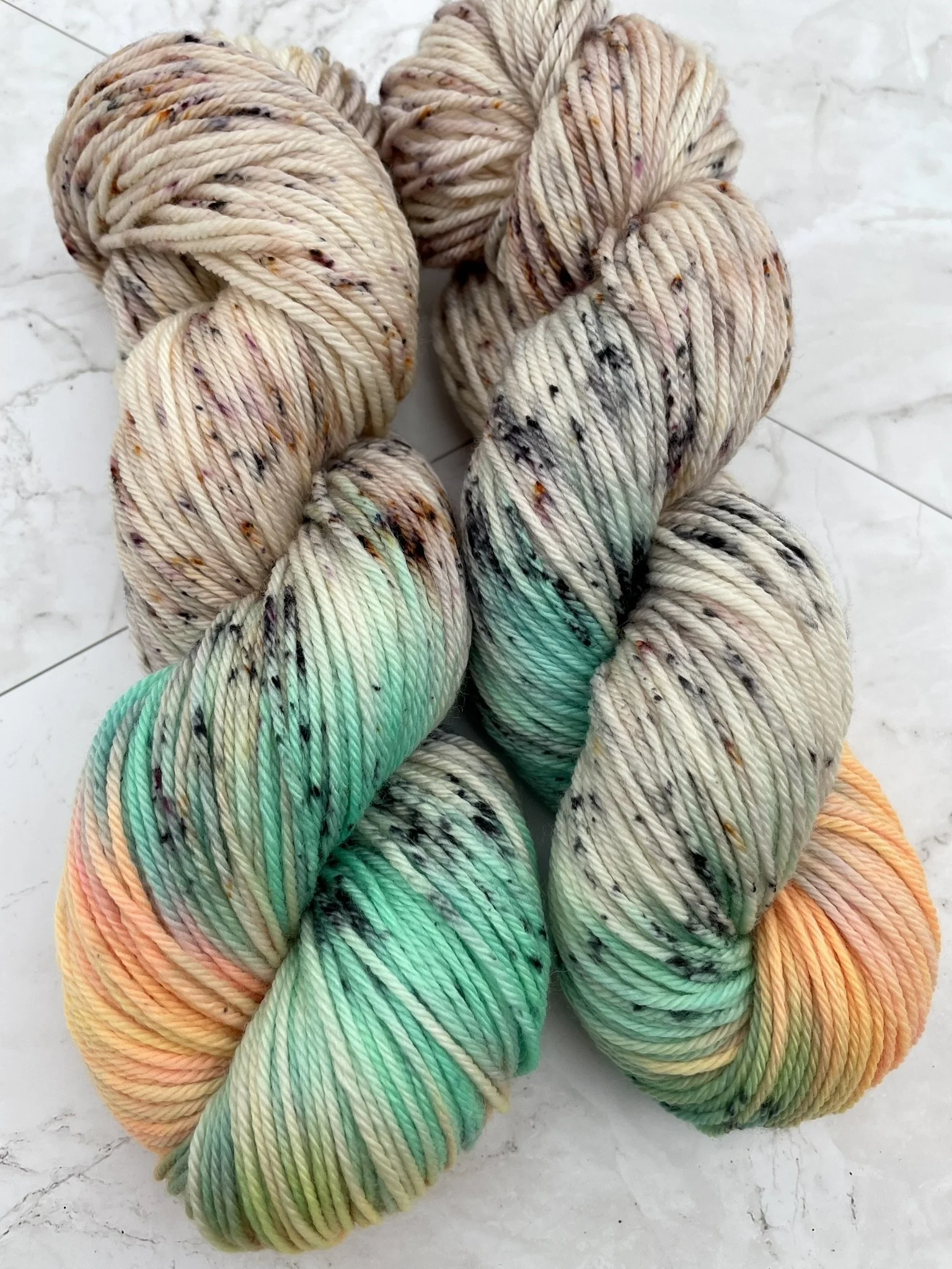 Disclaimer: The skeins shown are representative of the colorway — each hank is hand-dyed and uniquely one-of-a-kind. Variations in color placement, saturation, and speckling are part of the charm of artisan dyeing. You may not receive the exact skein pictured